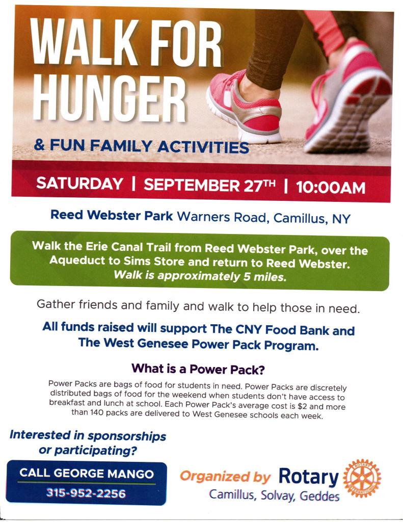 👟 Join us this Saturday at Reed Webster Park in Camillus as we walk together to fight hunger and support our community. Registration opens at 9 AM. There will be lots of family-friendly activities, too!