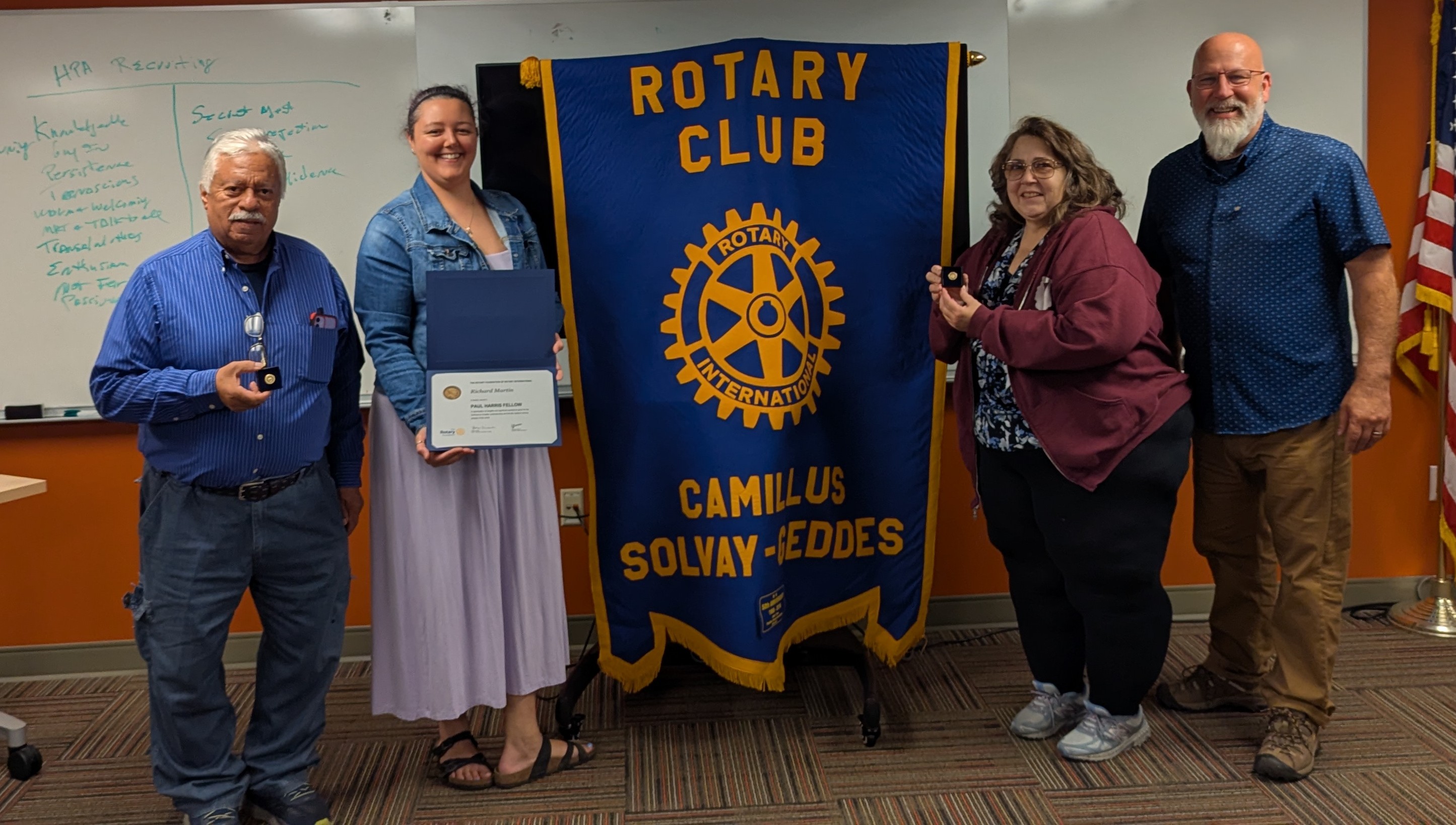 The Camillus Solvay Geddes Rotary Club is proud to honor two of our dedicated members with the prestigious Paul Harris Fellow recognition: Linda Rumple and Richard Martin.
