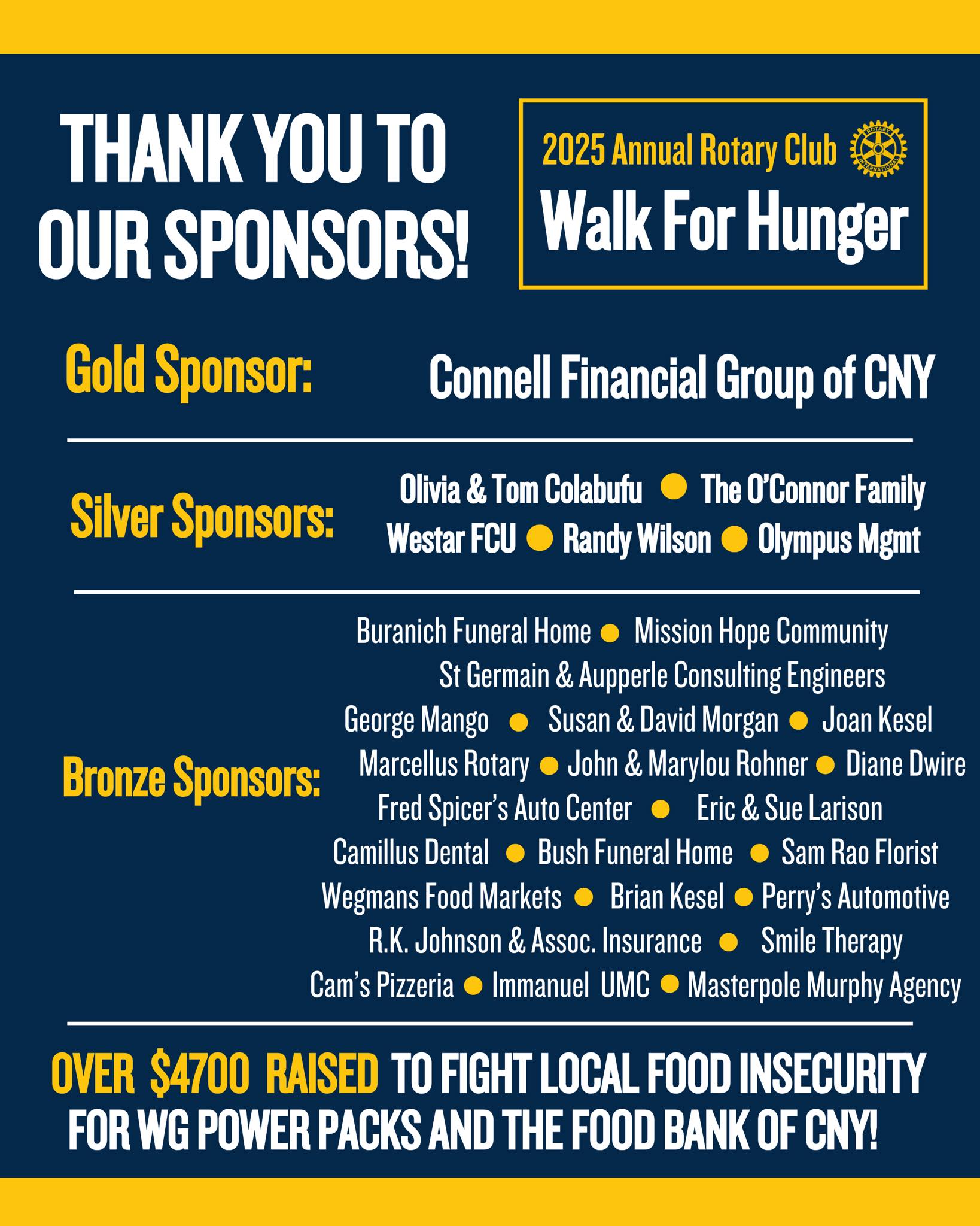 We can’t wait to see you there! 💙💛#Rotary#ServiceAboveSelf#WalkForHungerCNY Rotary News Network#rotaryfoundation