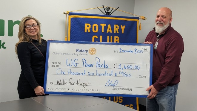 On behalf of our Club and community, Acting President Brian Kesel proudly delivered a $1,600 donation today to fellow Rotarian Olivia Colabufo, who coordinates the West Genesee PowerPack Program.