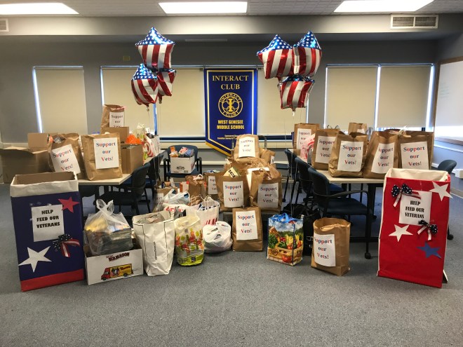 The West Genesee Middle School Interact Club conducted a successful “Feed the Vets” food drive this past week which will be distributed to a Veterans food pantry next Tuesday.